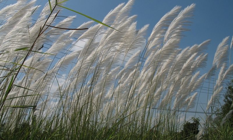 Perennial weed – underground stems exhibiting vigorous rhizomatous tillering, straight culms may reach 3 meters tall with diameter up to 1.5 cm., hard but very pitchy green, grey, ivory or white culm, often hollow in the center, rooting at the nodes, internodes usually long and nodes always thicker than internodes, up to 1 meter toothed leaf margins with whitish midrib, large spikelets of florets with long silky silvery white hairs 30-50 cm. long, borne in branching panicle inflorescences (20-60cm tall) that typically tower above the rest of the plant, florets producing a lot of seeds Reproduces with seeds, rhizomes and culm, strive in rich as well as poor soil, grows especially well in sandy soil with high moisture