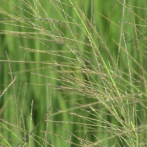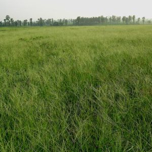 เป็นหญ้าสะเทินน้าสะเทินบก มีไหลขึ้นตามดินแฉะชื้นและเจริญงอกงามลงน้ำหรือขึ้นตามชายน้ำ กาบใบและข้อมีขนขาวยาวฟูเห็นได้ชัดด้วยตาเปล่า ต้นสูงพอ ๆ กับหญ้าปล้องและมักขึ้นปะปนกัน ใบกว้างกว่าหญ้าปล้อง ช่อดอกแตกเหมือนหญ้าชันอากาศ
