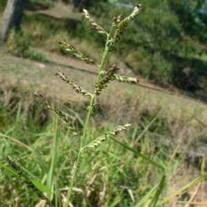 ลำต้นทอดข้อไปตามพื้นดิน ช่อดอกตั้งสูงถึง 50 เซนติเมตร ขอบใบด้านหนึ่งหยัก เป็นคลื่น อีกด้านหนึ่งเรียบ มีตุ่มขน (tubercle-based hair) เห็นชัดทั้งที่กาบใบและข้อต่อระหว่างใบและกาบใบ ช่อดอกสีเขียวแต่ละช่อยาวประมาณ 5 – 15 เซนติเมตร แตกลำต้นตรงข้อและงอกรากตามข้อติดพื้นดิน บางแห่งเรียกหญ้า เครือแดง กล่าวกันว่าเป็นหญ้าที่มีคุณค่าทางอาหารสูง สามารถใช้เลี้ยงสัตว์ได้
