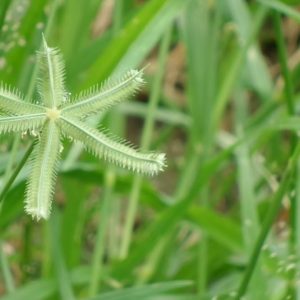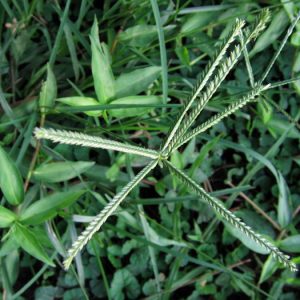 หญ้าชนิดนี้ลำ ต้นตั้ง สูงประมาณ 40-50 เซนติเมตร มีไหลแตกออกจากโคนต้น ข้อที่ติดอยู่กับพื้นดินจะออกราก และแตกยอดออกเป็นต้นใหม่ได้ ต้นอ่อนจะมีลำ ต้นแบน ขอบใบมีขนเห็นชัด ช่อดอกแตกเป็นแฉกจากจุดเดียวกันมีตั้งแต่ 3-5 แฉก แต่ละแฉกยาวประมาณ 3 เซนติเมตร