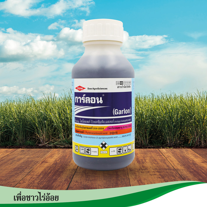 ชื่อการค้า : การ์ลอน ชื่อสามัญ : ไตรโคลเพอร์ บิวทอกซีเอทิล เอสเทอร์ (triclopyr butoxyethyl ester 66.8% EC) คุณสมบัติ : สารกำจัดวัชพืชใบกว้างและเถาว์เลื้อย ใช้ฉีดพ่นหลังวัชพืชงอก ขนาดบรรจุ : 500 มิลลิลิตร